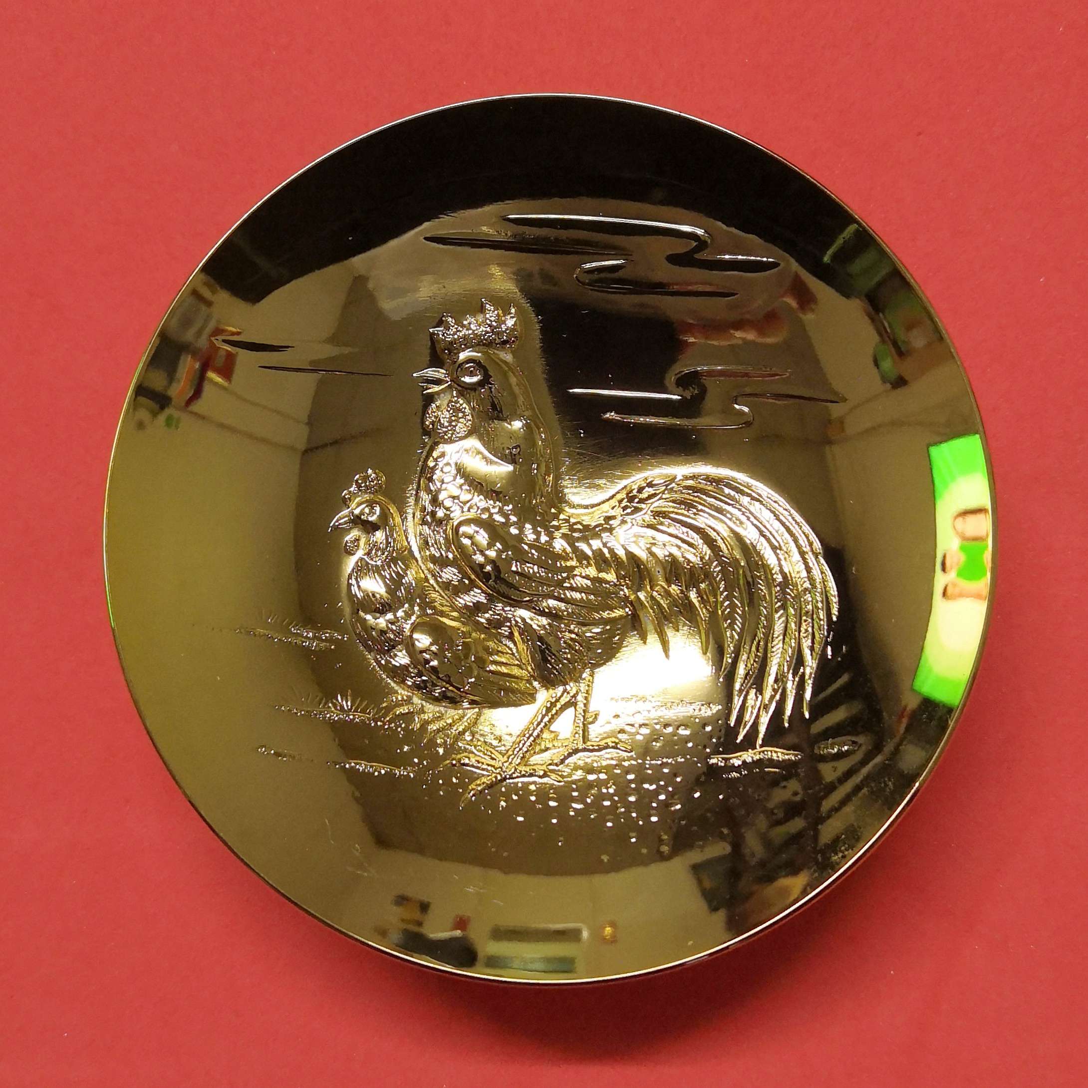 จอกสาเกญี่ปุ่น ชุบทอง 24KGP ขนาดกว้าง 7.2 เซน ลวดลายปีนักษัตร ปีไก่ ( ระกา )